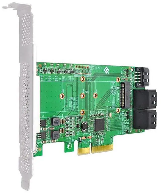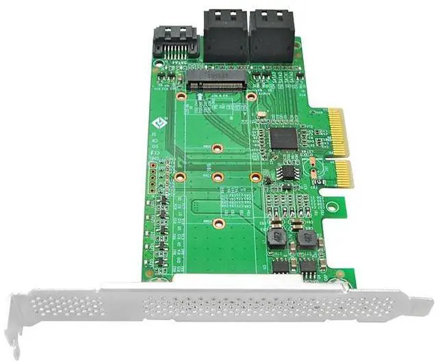 This 5-Port SATA III PCIe Card delivers fast 6Gb/s connectivity via PCIe 3.0 x4, ideal for adding extra HDDs/SSDs. Unlike RAID cards, it runs drives independently (JBOD) or supports software RAID. The low-profile bracket ensures compatibility with most cases. Perfect for expanding storage in PCs, NAS, or media servers needing more SATA ports.
