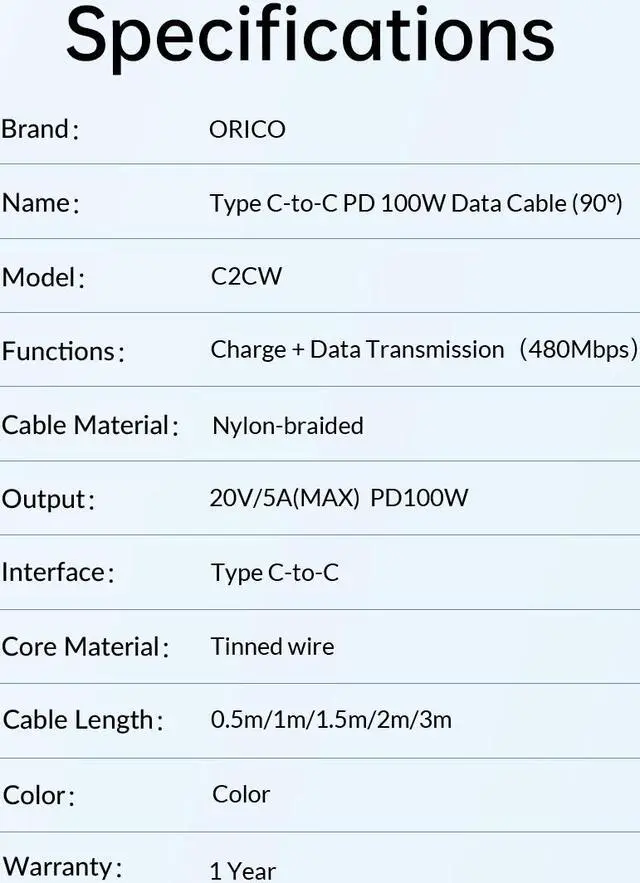 ORICO USB C Cable Nylon-braided USB C to USB C Cale PD 100W Charging and Data Transmission 480Mbps PD Type C Charging Cable for MacBook Pro Air, iPad Pro, Switch PS5, Huawei Samsung 6.5 ft.