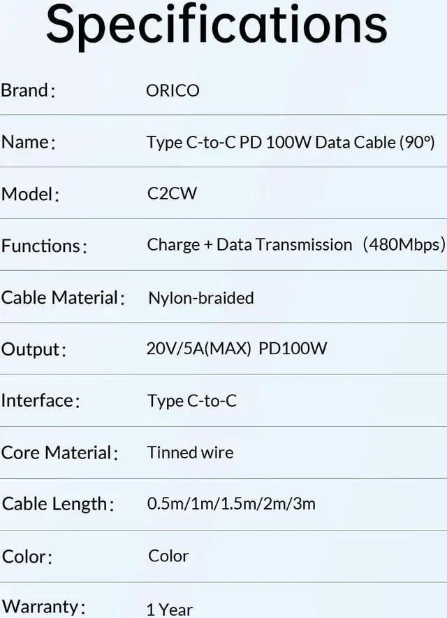 ORICO USB C Cable Nylon-braided USB C to USB C Cale PD 100W Charging and Data Transmission 480Mbps PD Type C Charging Cable for MacBook Pro Air, iPad Pro, Switch PS5, Huawei Samsung 4.92 ft.