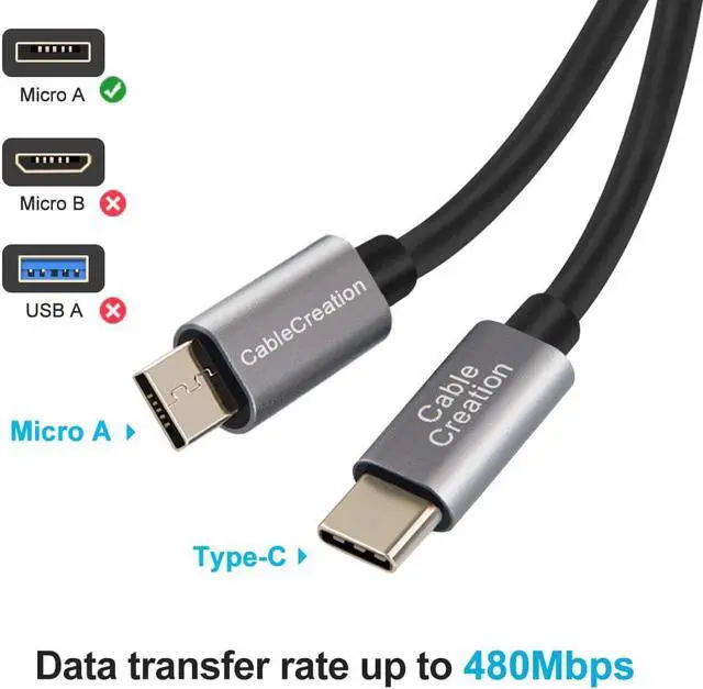 480Mbps High Speed: This USB C to Micro USB A cable supports hi-speed USB 2.0 data transfer rate up to 480 Mbps.