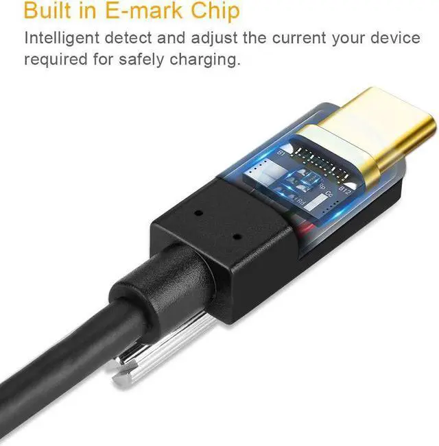 E-marker Chip This USB-C cable is built in an electronically marked chipset (E-Marker) for power delivery, which automatically detects the connected device and output safe current that device needs.