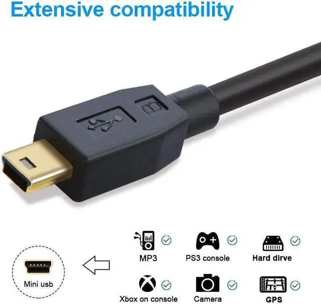 Superior Cable Quality: Corrosion-resistant bare copper conductors, gold plated connector and foil & braid shielding provide the mini usb to usb cord maximum conductivity and minimize data loss