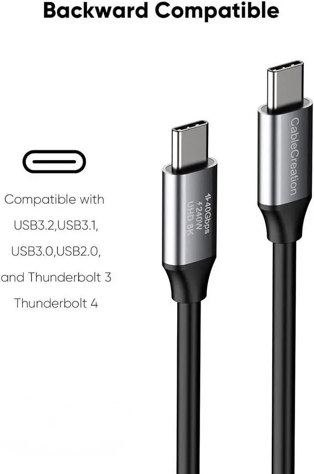 Product Description CableCreation Short USB4 Cable 1FT, Thunderbolt 4 Cable 40Gbps, 240W, 8K@60Hz, Compatible with Thunderbolt 3, Thunderbolt 4 and USB-C