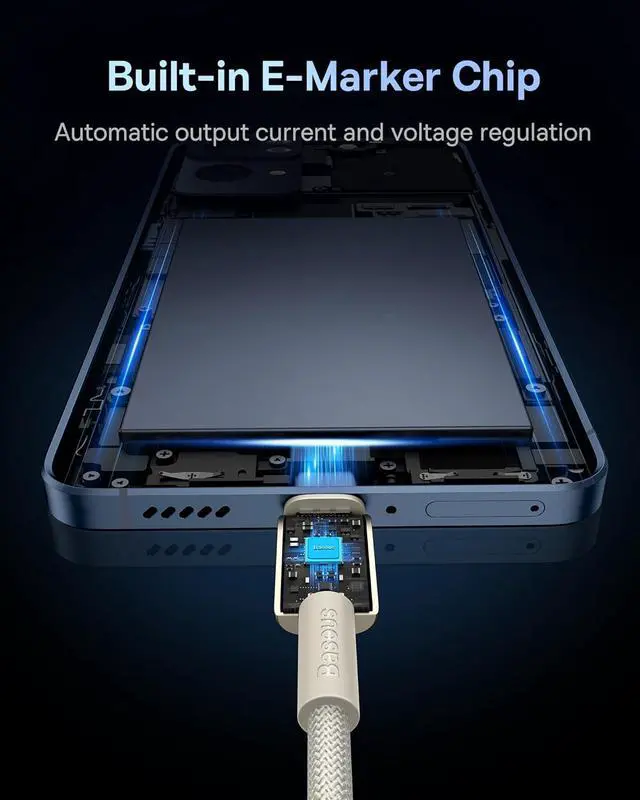 Certified E-Marker ChipThe certified smart chip regulates the current and voltage, ensuring the safest 100W fast charge. You can use it to charge any device with confidence.
