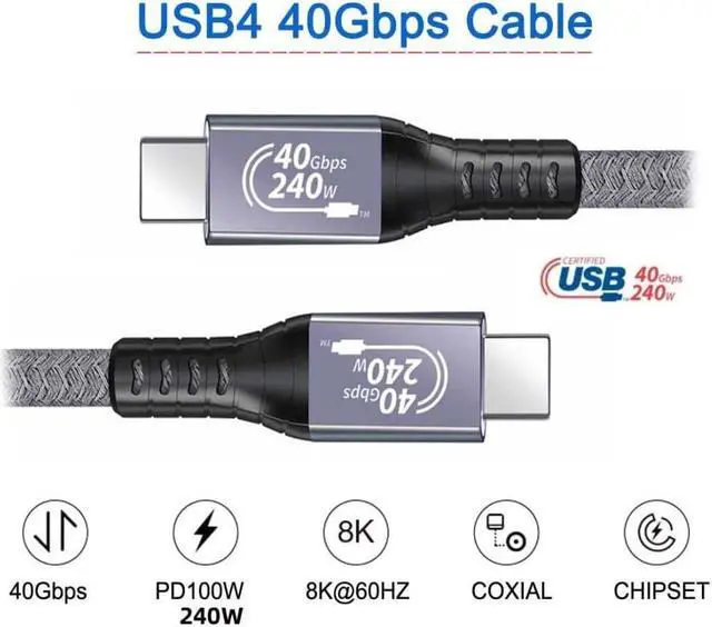 2) USB4.0 Max 40Gbps Data Transfer Rate: This USB4 Cable can Reach Data Transfer Rate up to 40Gbps,the transmissions speed is twice as fast as Thunderbolt3.