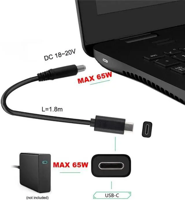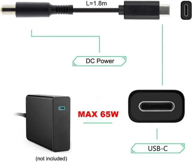Work for Laptop Notebook. Use it with the 65W or 87W Type-C Charger to conveniently charge your Laptop with DC 18v-20v port from a wall outlet.