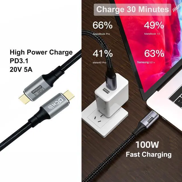 100W USB C Charger Cable: Time Saver Well built with high quality E-marker smart chip, 4 short slim 5A USB C to C type fast charging cable supports 100W PD quick charge (PD 3.1, 20V 5A) to super fast fuel your Type-C port laptop, tablet or smartphone, also supports 65W, 60w, 50w, etc.