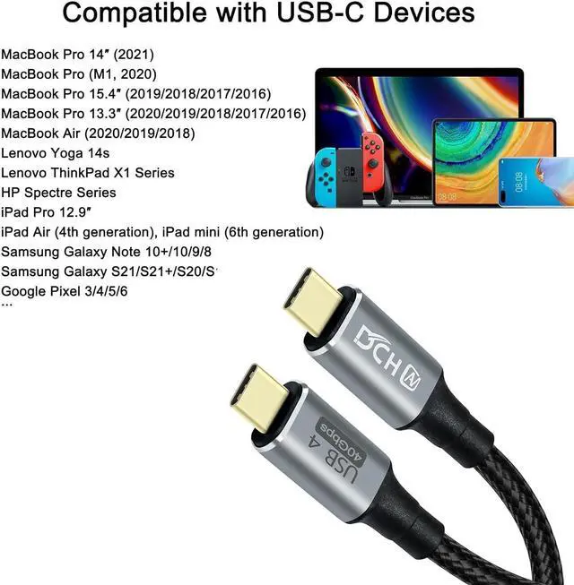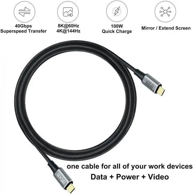 3.3 ft USB data transfer cable USB4 Gen 3x2 supports super fast data transfer up to 40 Gbps/s, save lots of time when transfer GBs of media files between hard drive SSD, or high speed connection of universal dock station to computer.