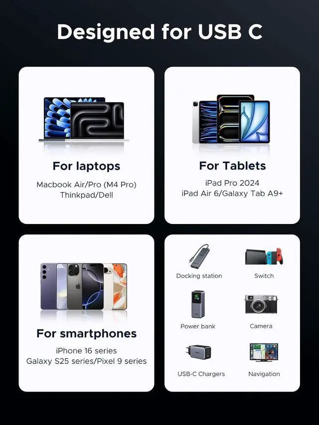 All-in-One Solution: A single USB C to C cable handles 240W charging, 40Gbps data sync, and 8K maximum video output. Easily connects to USB C laptops, phones, and tablets. Compatible with MacBook Pro Air, XPS 17, iPhone 16, Galaxy S25 24, iPad Pro, monitors, etc. Backwards compatible with Thunderbolt 4, USB 3.0, USB 4.0, USB 3.2, USB 3.1, USB 3.0, and more