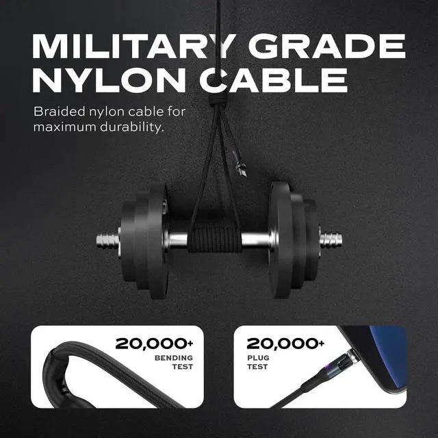 magnetic charge cable fast charging android rotates 360 degrees with unbreakable nylon cord usb c