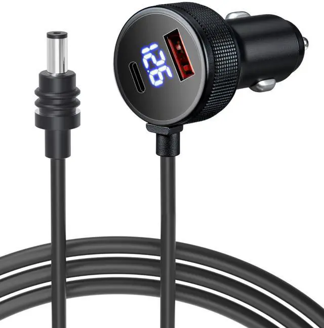 Steinwhale Car Charger to DC Cable with Display, with USB C and USB A Ports, Aluminum Construction Finish