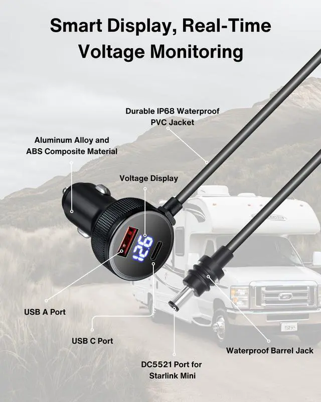 • Real-Time Voltage Monitoring Safe & Smart Power Management: The built-in digital display provides real-time voltage monitoring, helping you track your vehicles power status to prevent overvoltage, low voltage, and battery drain issues. Stay in control of your Starlink Mini power supply with smart, precise voltage readings.