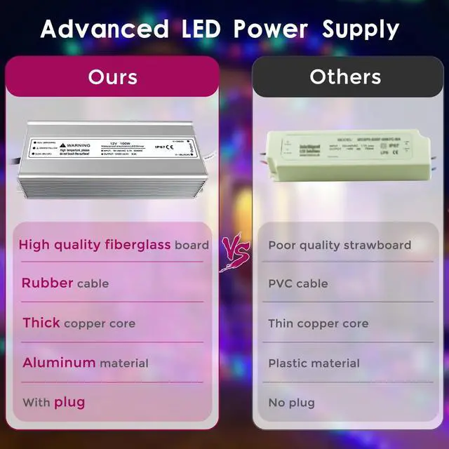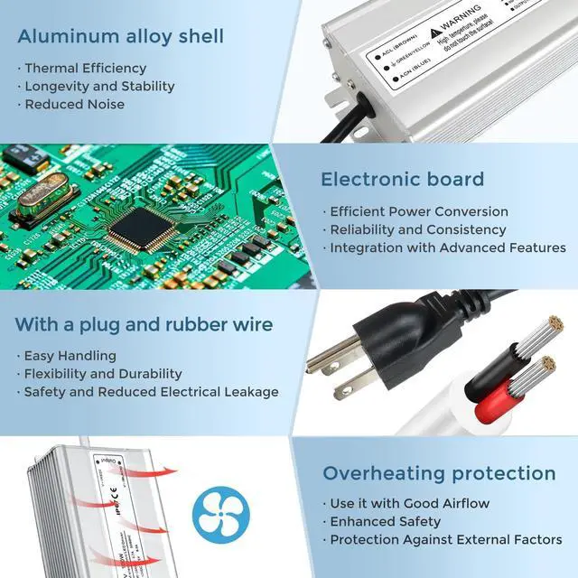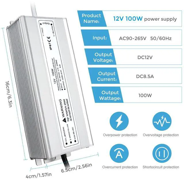 - 12v led strip light power supply comes equipped with automatic protection against short circuit, overload, over voltage, over current, and over temperature.