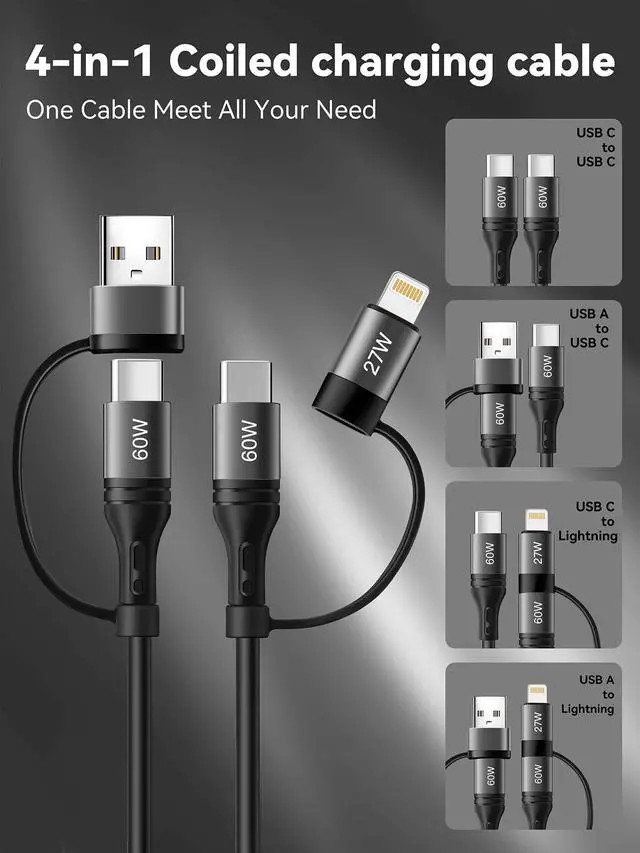 4 in 1 Coiled Lightning Cable