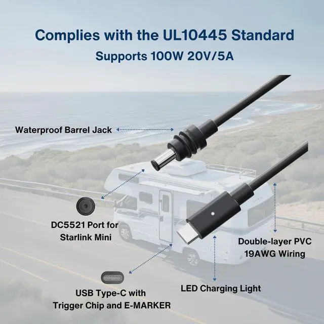| PD 100W Power Supply | PD 100W Power Supply | DC Power Supply | Car Cigarette Lighter 12~48V | Starlink Router/3rd Party | Starlink Router/3rd Party |