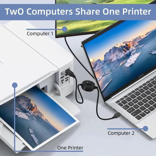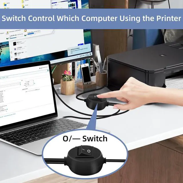 One-Botton Switch, Time and Cost Saving: The manual switch button will avoid frequently unplugging the USB Printer cable. By this we can cut down office equipment spending and save lots of space,works with any USB-enabled computer without drivers. Best solution for people who need to work with 2 computers