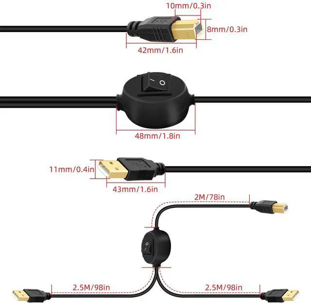 Size: the cable length is 4.5M, the length of USB A to the switch is 2.5M, and the length of USB B to the switch is 2M