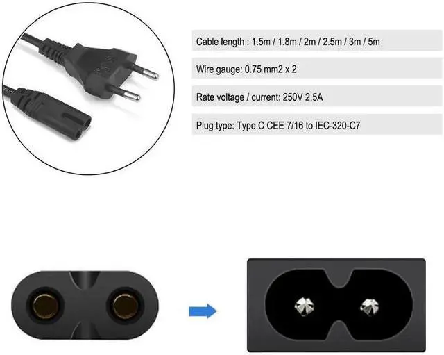 100% brand new eu plug figure 8 IEC C7 power cable cord