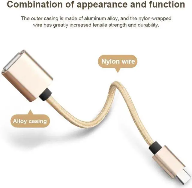 Type C to OTG Cable Adapter Converter Audio Cable splitter for type-c c otg cord alloy casing nylon wire connector type-c