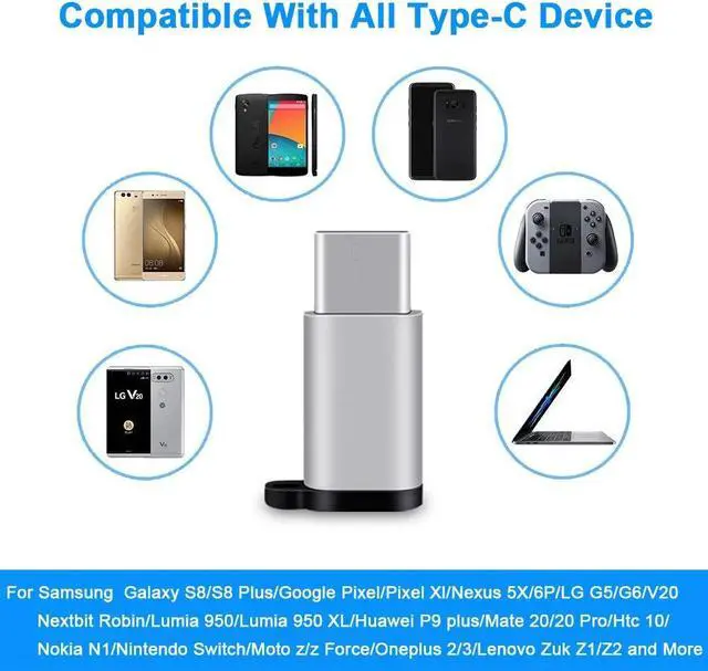 Compatible With: Galaxy S9 S8 A8 Plus S8+ Note 8, LG G5 G6 V20 V30, Nexus 5X 6P, Google Pixel Pixel 2 XL Pixel C, ChromeBook, Macbook Pro, Nintendo Switch, Mate 9 P9 P9+, HTC 10, 2 3 3T, Microsoft Lumia 950 950XL, Axon 7, Moto G5 Z Z Force, XZ, Hero 5, Nextt Ron, Zuk Z1 Z2, Helio X20/X25 and All other USB Type C Devices.