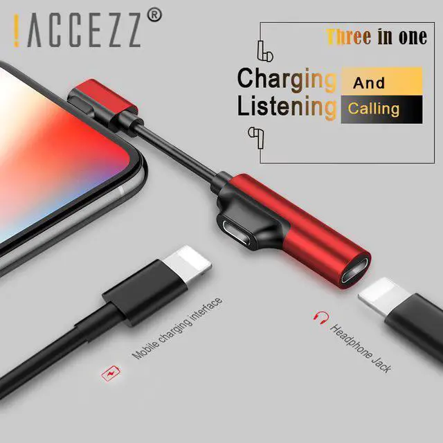 ACCEZZ 2 in 1 Double Lighting Charging Audio Adapters For iphone X 10 8 7 Plus IOS 10.3 11 Charge AUX Splitter Cables Connector