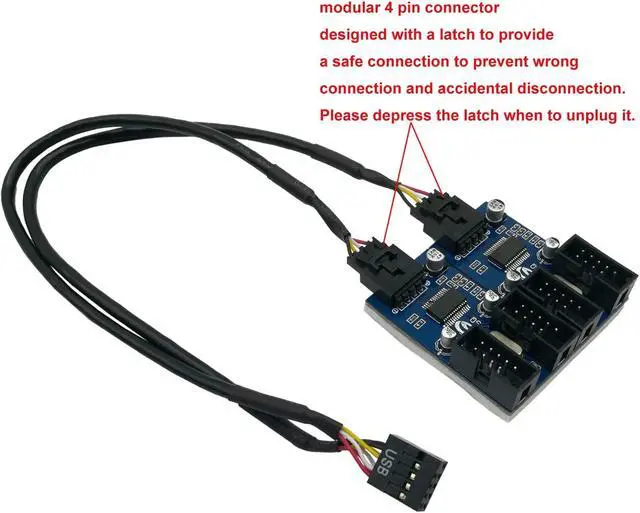 ?Solution?Port multiplier version: extend 9 pin USB 2.0 port to 4x 9 pin USB 2.0 ports;