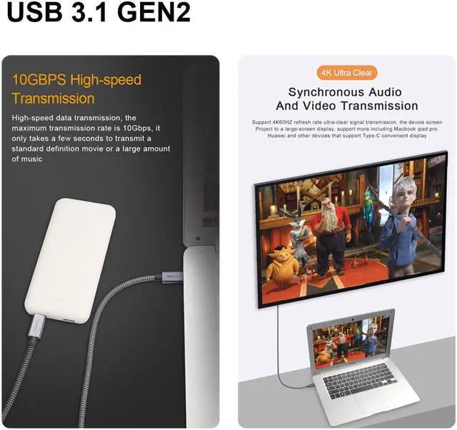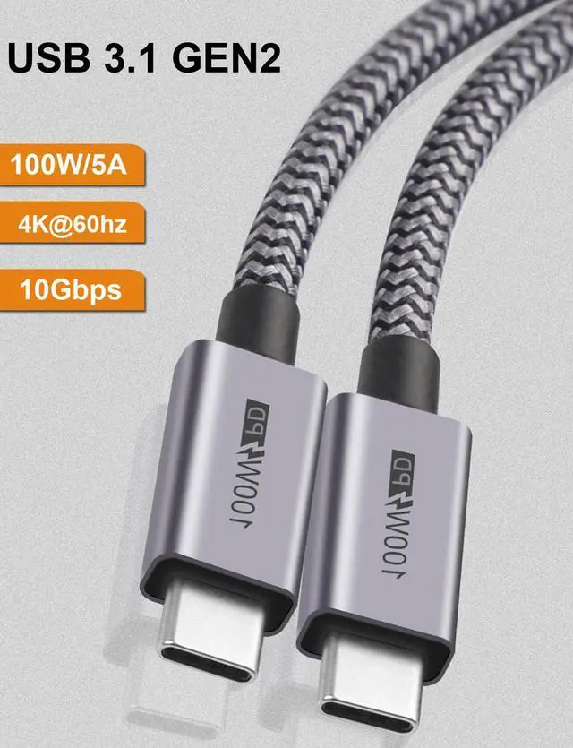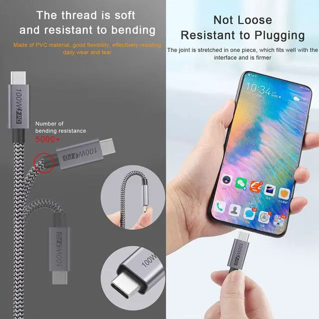 NOTE: The actual data transfer vary from the size and type of files. 4K@60HZ VIDEO-USB C 3.1 GEN2 full function cable could offer maxup to 4K@60hz high revolution video transmission. DURABLE NYLON BRAID-100000 twisted and stretched testing USB C cable, which joint is stretched in one piece, fitting well with the interface and firmer