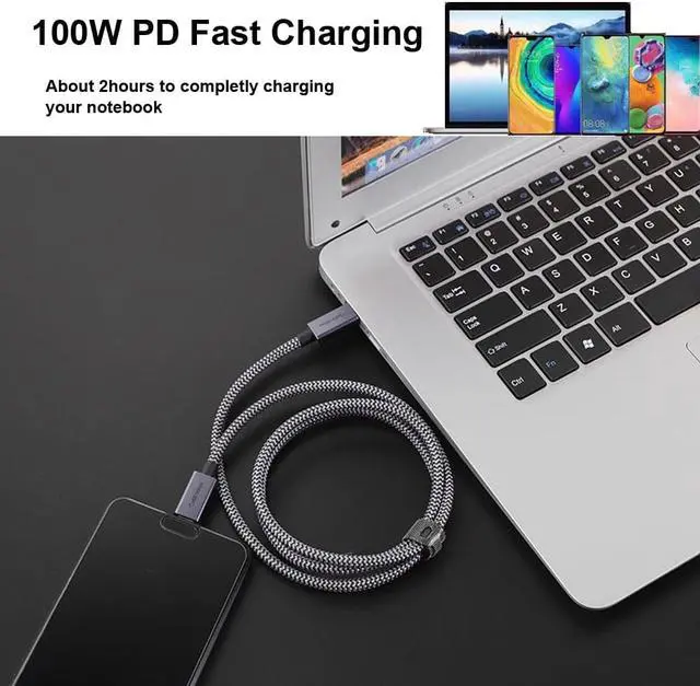 100W POWER DELIVERY-20V/5A Power delivery, Ideal C Cable for charging your Mackbook or other C shape port Notebook, Tablet and Cellphone. Long 1.2 meters length sufficiently long to fit various life&work pruposes. 10Gbps DATA TRANSER- Supports data transfer rates up to 10Gbps (2x faster than USB 3.1 Gen 1). Transfer an HD movie in seconds.