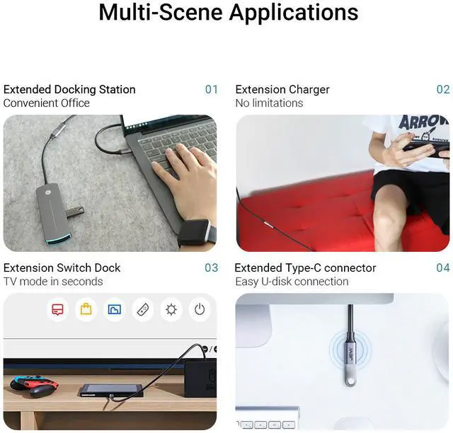 Compatible with Most USB-C built-in devices:The USB C extension cord perfect compatibility with Steam Deck, USB C hub, Mag-safe Wireless Charger, MacBook Pro/Air, iPad Pro/Air, iMac Pro,Surface Go,Galaxy S22/S21/S21 ultra, Google Pixel 6/5/4a, Huawei P50 P30 Pro,multi-port hub/dock, USB-C monitor/display,PD wall chargers etc.(NOTE: This usb c extender does not work with any active Thunderbolt 3 docking stations/ hubs/ cables).