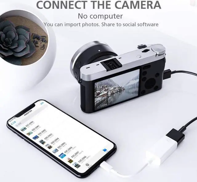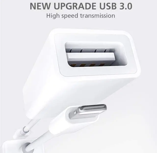 2. if connecting with USB flash drive and your system is iOS 12 and earlier, please be must create a folder called "DCIM" to the root of the USB flash drive, then create a folder called "100" into "DCIM". Copy the photos and videos into the 100 folder. Rename each photo and video file as "IMG_XXXX", where XXXX is a unique number. For example, if you had one JPG file and one MOV file, name them "IMG_0001.JPG" and "IMG_0002.MOV", then insert the USB flash drive to this adapter connect to iPhone or iPad, after 3-7 seconds, iPhone or iPad will automatically pop-up the picture window, PS: only for transfer photos and videos files, dose no support other files and it's one-way transfer.