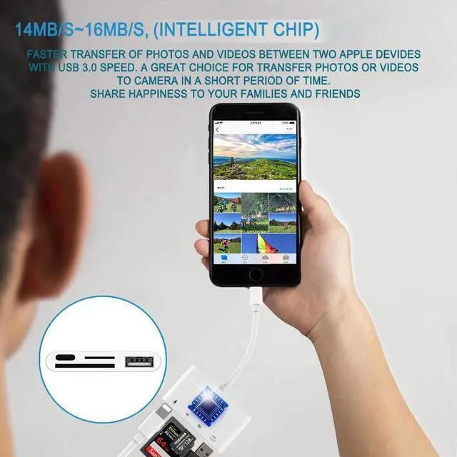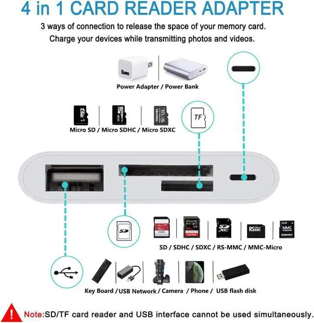 New design : USB++TF+charging (4 in 1 adapter)The technical requirements for this adapter is very high, In order to ensure perfect customer experience for the adapter, It has been imbedded Original integratedcircuit with good chip.