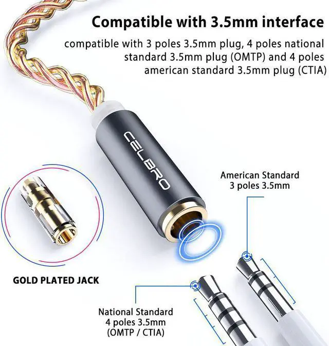 compatible with 3 poles 3.5mm plug,4 poles national standard 3.5mm plug(OMTP) and 4 poles american standard 3.5mm plug(CTIA)