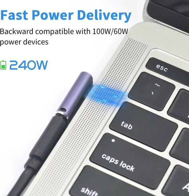 USB C Right Angle Adapter: Support the 240W PD Fast charging and 8K Video Display. It can realize the maximum 5V/3A-20V/5A, can provid the fastest possible charging for your devices. When you use the USB4 Cable, it can support 8K@60Hz HD video & audio output, and it make your game or office have a more high-definition and excellent experience.