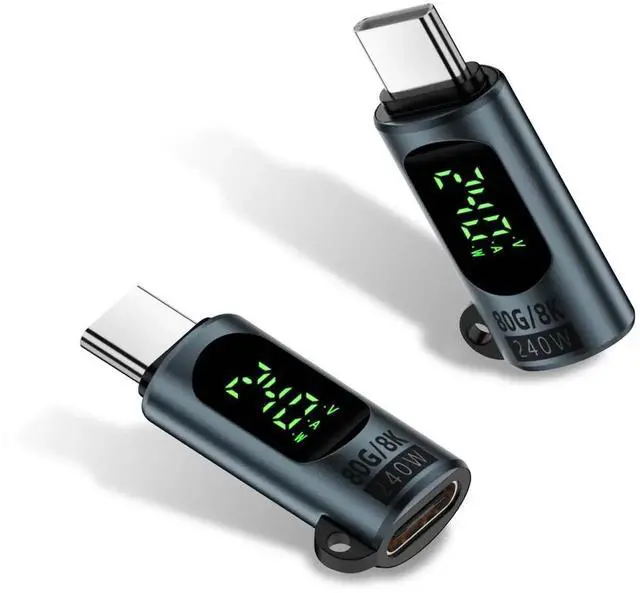 80Gbps USB C Extender Adapter with Power Meter Tester, 240W PD, 8K@60Hz Wattage, Voltage, Amperage LED Digital Display, USB C Male to Female Adapter for iPhone 15/16 (Grey-2 Pack)