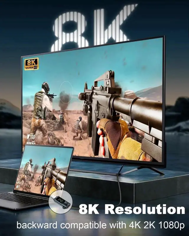 8K Ultra HD Video OutputThe adapter supports 8K@60Hz high-definition video transmission. It is plug-and-play without the need for drivers and can easily transfer video from USB-C devices to monitors, TVs or projectors. (Note: It needs to be used with a cable that supports video transmission.)