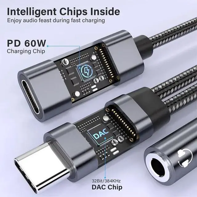 [2-in-1 Functionality]Listen to music and charge your phone at the same time with this Type C to Type C + PD adapter.