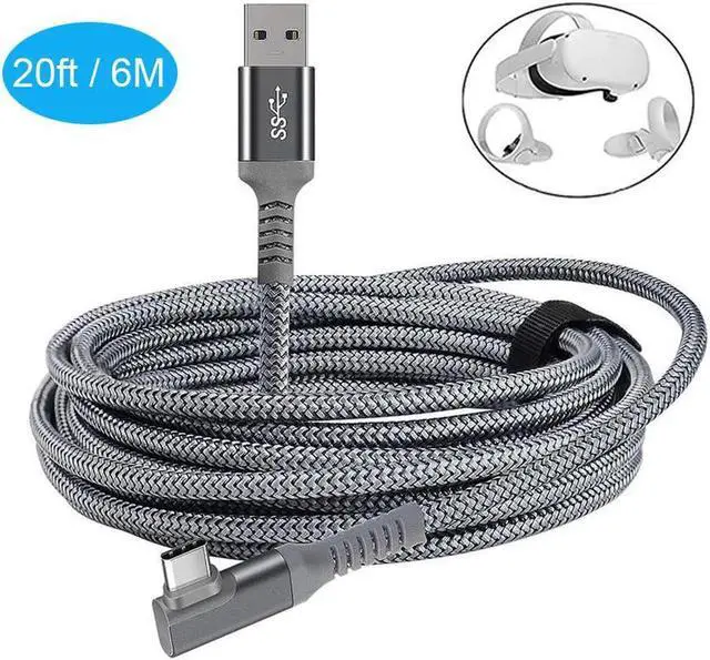 20ft / 6M Nylon Braided VR Link Cable for Oculus Quest 2 and PC/Steam VR Quest VR Headset, Right-Angled 90 Degree USB A to USB C 5Gbps High Speed Data Transfer Charging Cord for Gaming PC ( A to C 6M)