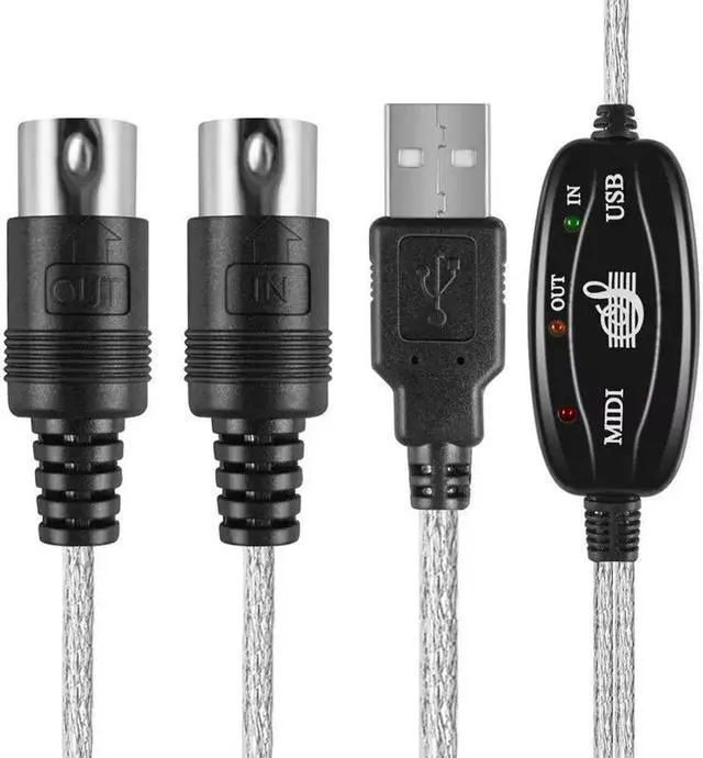 Connect the cable marked "OUT" to the MIDI "IN" socket of a MIDI keyboard (or MIDI device).