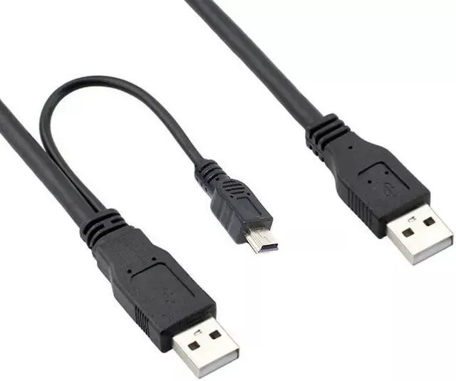 This USB-A to Mini-B Y-Cable provides two USB A Male connectors and a single USB mini-B Male connector - an ideal solution for providing the additional power required by some mini-USB External Hard Drives connected to the standard USB ports provided by most computers. Especially valuable in situations where a single USB 2.0 port may not offer sufficient power to external hard drives, the USB A/Mini-B Y-cable can be connected to two ports on one PC to increase the power output to power the external device. Aside from the additional power provided, this cable also offers high speed error-free data transfer.