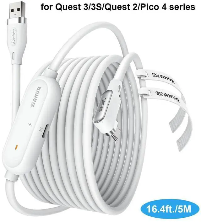 The Link Cable combining the three advantages of charging, length and excellent connection performance will make you feel good value for money. 16Ft (5M) wire made of tin-plating copper core with anti-interference aluminum foil delivers up max to 5Gbps bandwidth for crisp, lag-free visuals. Perfect for Steam VR/PCVR games transmission, it supports higher resolutions and refresh rates when connected to the USB 3.0 + port