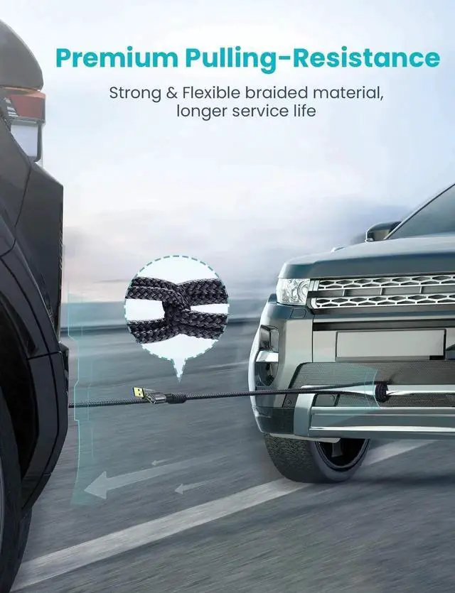 With premium aluminum alloy material connector, it passes 20, 000+ bending test, which ensures longer service life, and leaves you no broken worries.