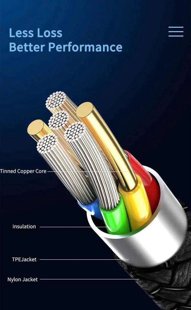 Premium nylon braided cable adds additional durability and tangle free. Special Strain Relief design, can bear 10000+ bending test