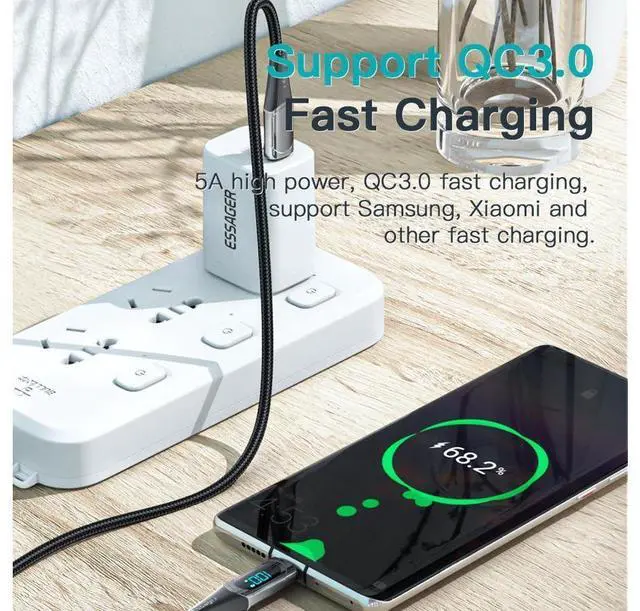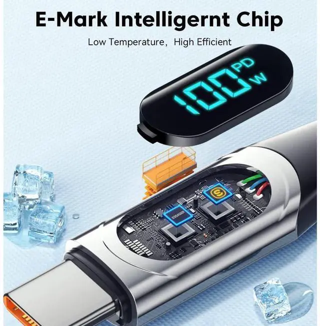 LED REAL-TIME POWER DISPLAY: Type-C cable can display the charging power in real time, allowing you to monitor your device in real time, bid farewell to the anxiety of unknown charging rate, and give your mobile phone/computer/tablet the safest protection. You have the highest technological experience.