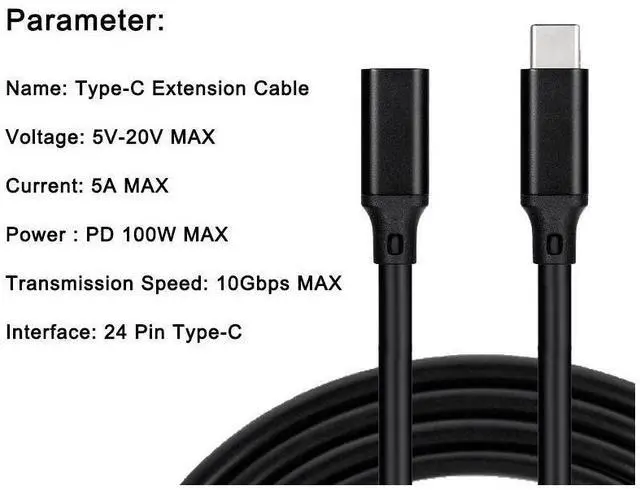 ![Alt view image 3 of 7 - USB C Extension Cable 6.6ft/2M [100W, 20Gbps], USB-C 3.1 Gen 2 USB C to USB C Male to Female 4K Video Cable, Compatible with MacBook Pro/Air, Samsung, Nintendo Switch and More eokCXOY](https://c1.neweggimages.com/productimage/nb640/C2AGS2511070DJKRA82.jpg)