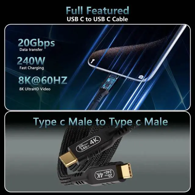 20gbps usb c cable, usb c cable 1ftshort usb c cableusb c 3.2 gen 2 cableusb c high speed data transfer cable, usb c 4k cableUSB C Monitor Cable, 240w usb-c charge cable usb c to usb c cable