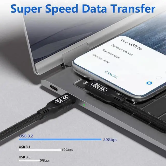 20Gbps Data Transfer Speed: This usb c to c cable meets the USB 3.2 Gen 2 x 2 standard. It can transfer data at 20Gbps, twice the speed of the last generation. This is fast enough for most devices and great for connecting portable external SSDs. (The actual speed may vary depending on your device's protocol)