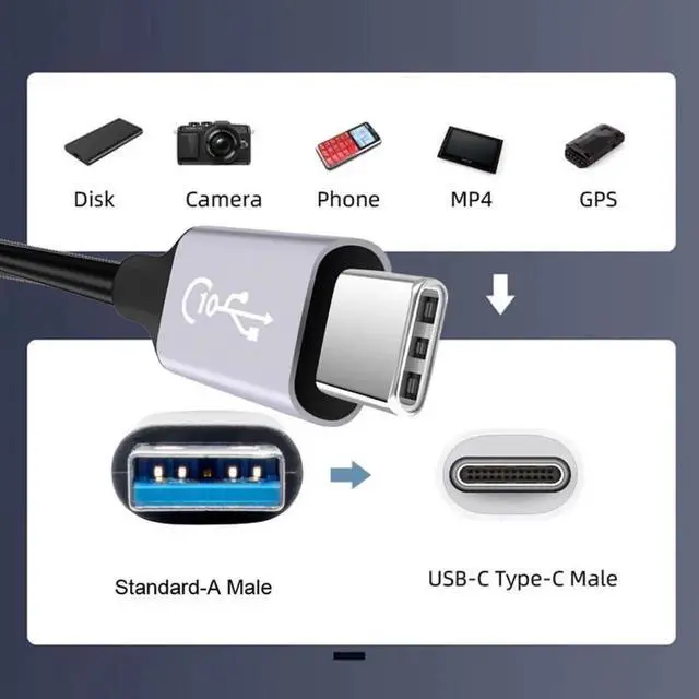 USB 3.1 Type C Male to USB3.0 Type A Male 10Gbps Data Power Cable 5V3A for Disk Laptop Phone