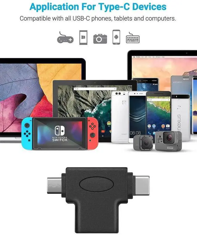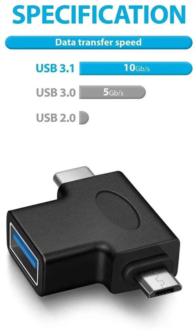 -Multifunction USB OTG Adapter: Micro USB 3.0 , USB 3.0(USB-A) and USB 3.1 Type C (USB-C) On-The-Go (OTG) adapter transform USB OTG enabled smartphones and tablets with Micro USB port into a host for connecting USB peripherals. The usb to type c adapter supports the newest USB 3.1 type-c of phones, notebook and macbook port.