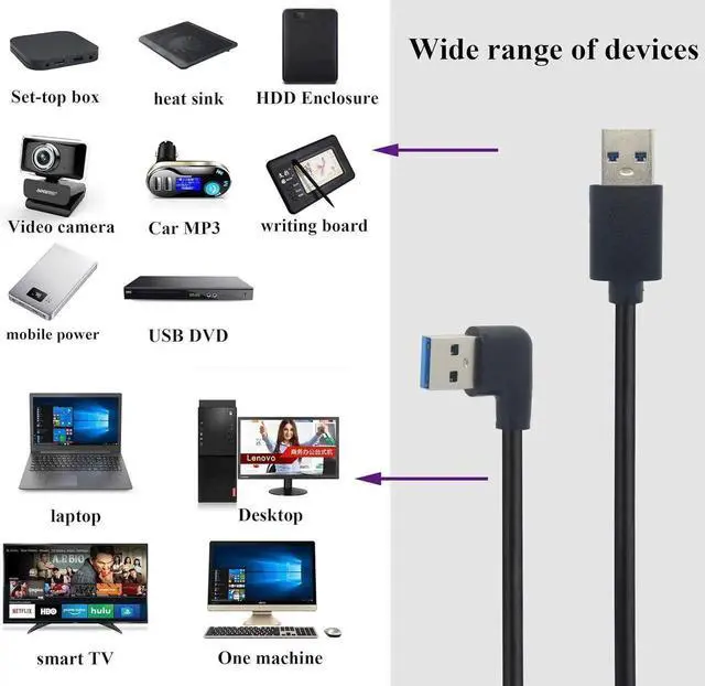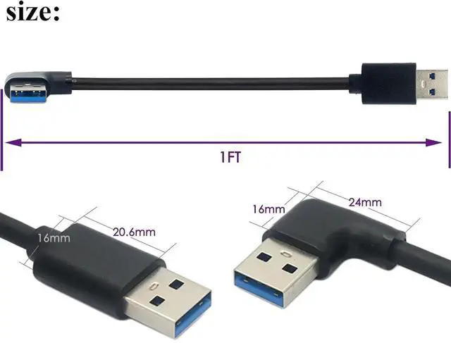 Connectors: 90 degree USB 3.0 A male jack cable (Charging & Data Transfer two in one)