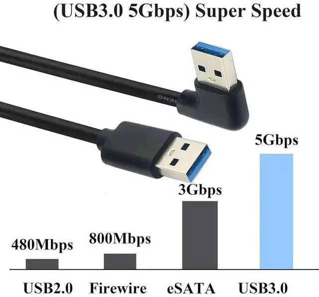 Angled USB 3.0 Type-A Male to Straight 3.0 Type-A Male Data 5Gbps Cable 90 Degree Angled
